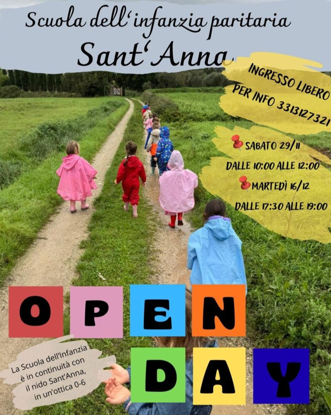 La Scuola paritaria d'infanzia S. Anna di Orentano organizza gli Open day per le famiglie nelle seguenti date: