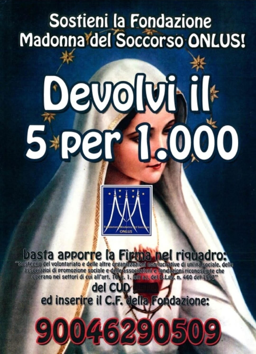 La Fondazione Madonna del soccorso Ets chiede a tutti gli amici e sostenitori la possibilità di devolvergli il 5 per mille.