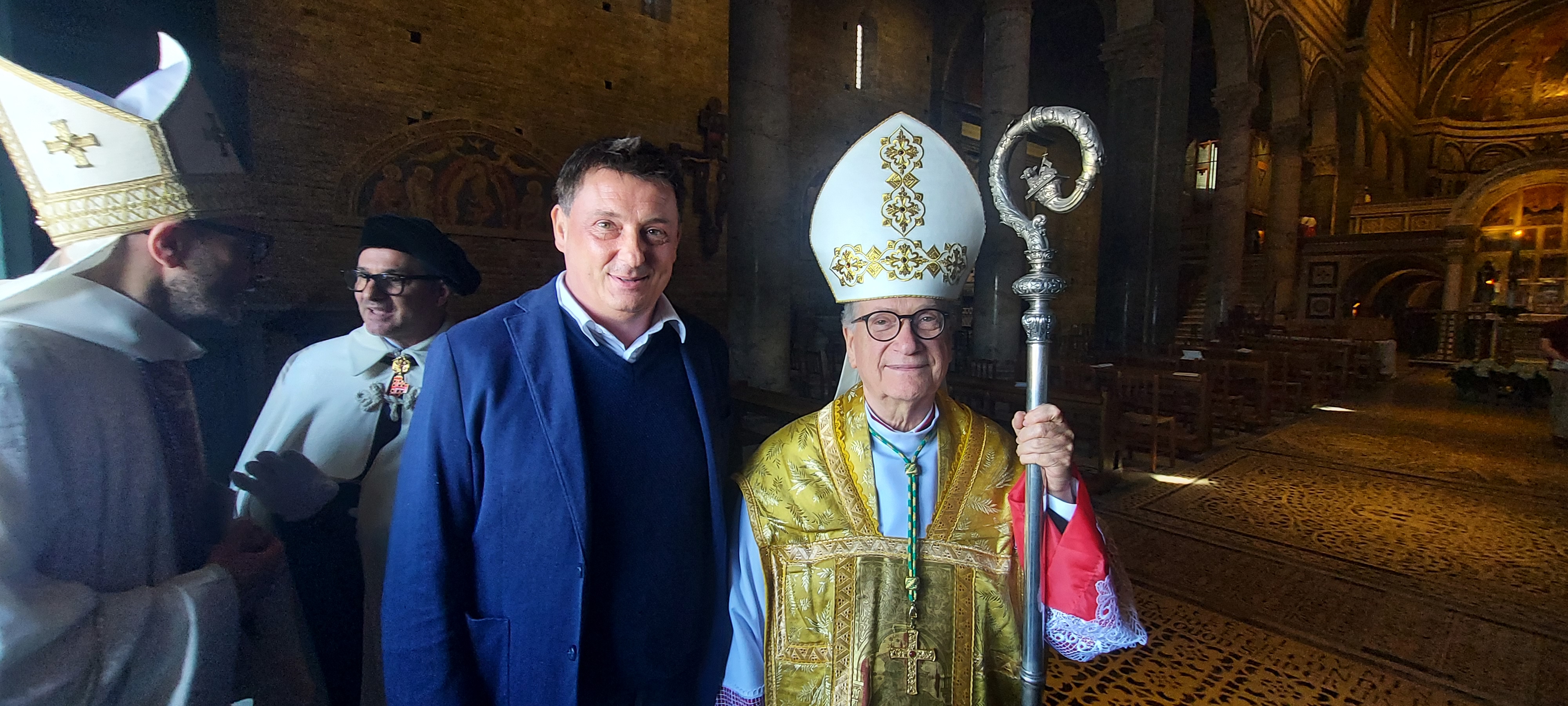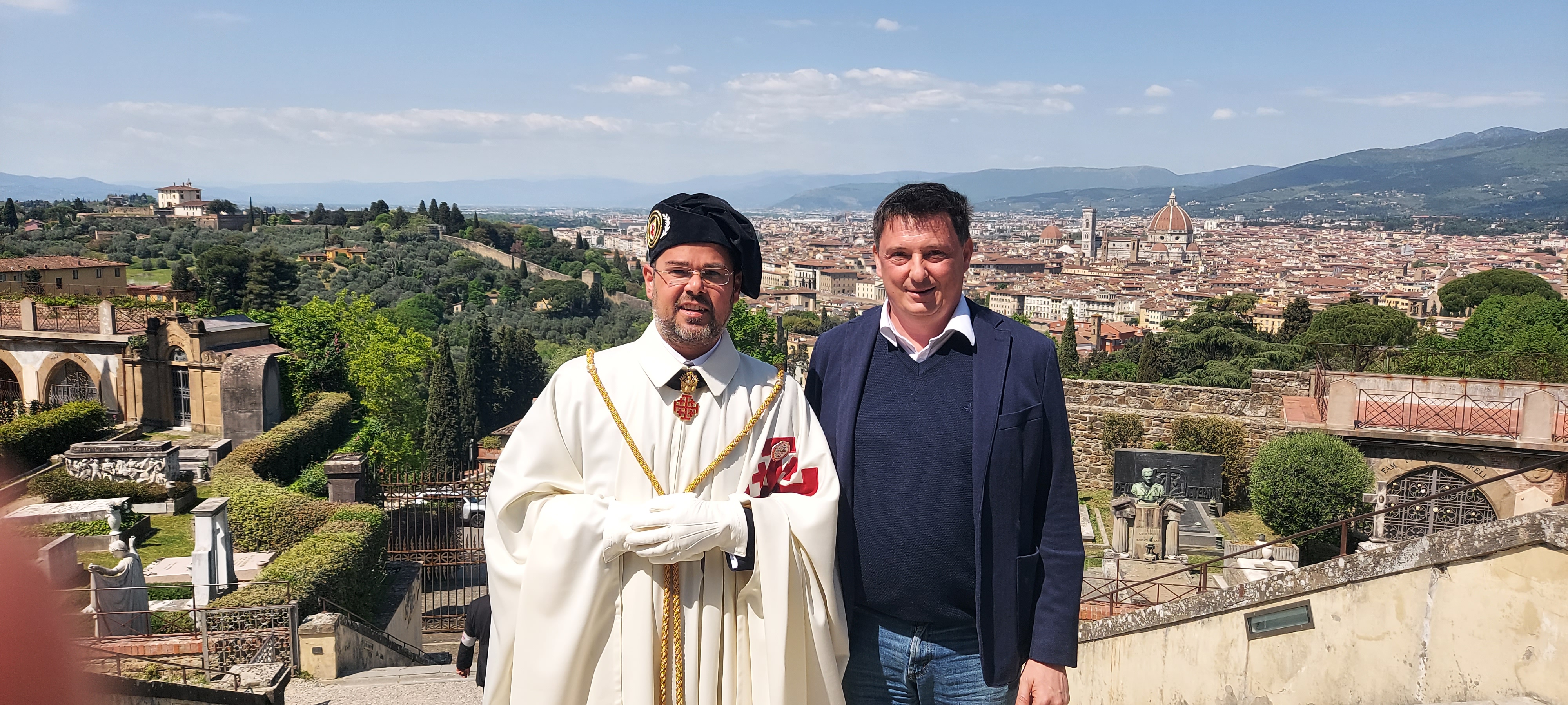 L'amico della Fondazione Marco Meucci ha accettato l'incarico della Luogotenenza dell'Italia Centrale e Appenninica dei Cavalieri del Santo Sepolcro durante una sentita e toccante cerimonia svoltasi il 18 Aprile alle ore 11.00 con pontificale presieduto da S. E. Mons. Fausto Tardelli Vescovo presso la Basilica di San Miniato al Monte a Firenze. A Marco la vicinanza dell'intera Fondazione Madonna del soccorso. Ti siamo vicini con la preghiera Marco e affidiamo alla Vergine e Immacolata Maria il tuo prezioso servizio!